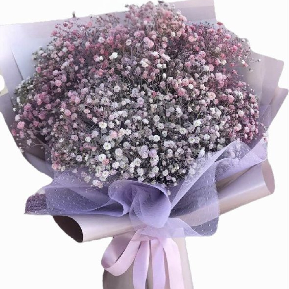 A bouquet of 11 branches of multi-colored gypsophila in stylish packaging