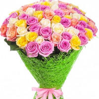 Оформить заказКомпозиция из 19 веток разноцветных альстромерий в шляпной коробке с оазисом.