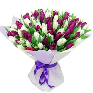 Великий букет із 101 тюльпану в паперовій упаковці.