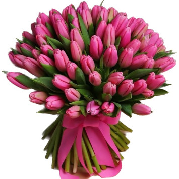 Великий букет із 75 рожевих тюльпанів.