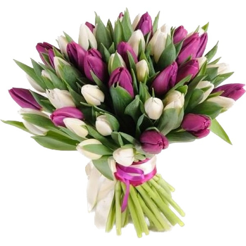 Зробити замовленняБукет з 25 тюльпанів (білі та фіолетові)